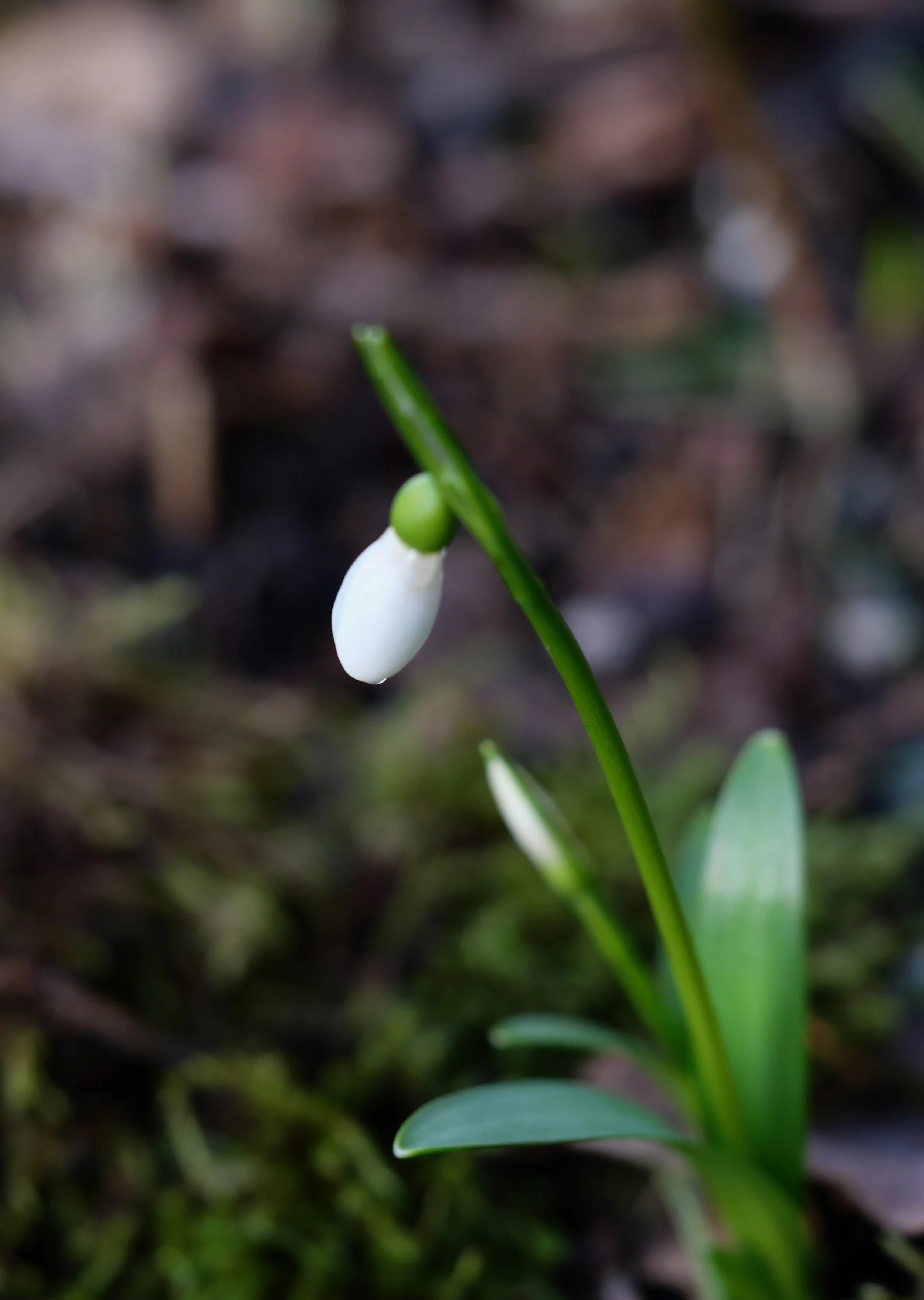 Galanthus gracilis. Släkt med den turkiska snödroppen men ofta sirligare och med vridna blad.