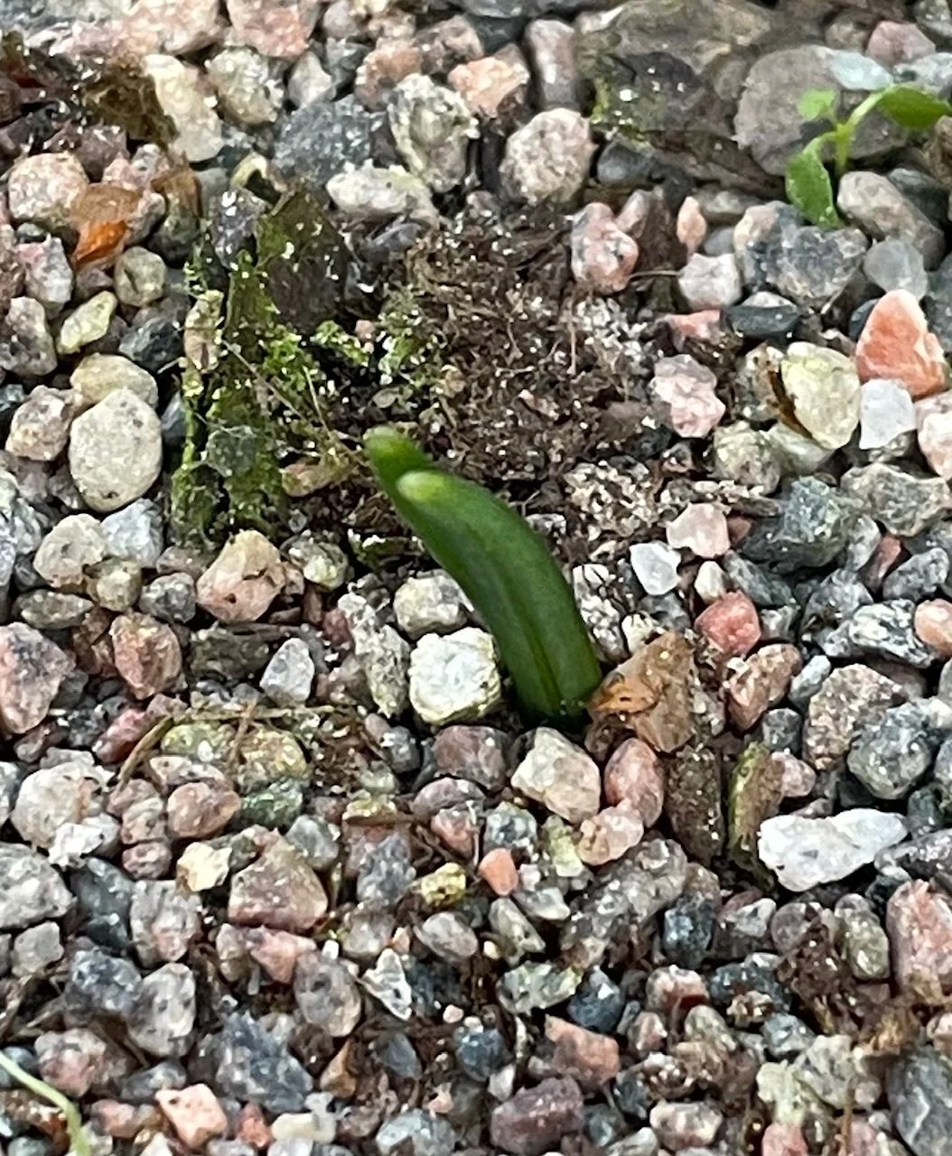 En Galanthus reginae-olgae subsp reginae-olgae. En grekisk - italiensk snödroppe som blommar på hösten och inte gillar svenskt sommarregn Blommar innan bladen kommer.