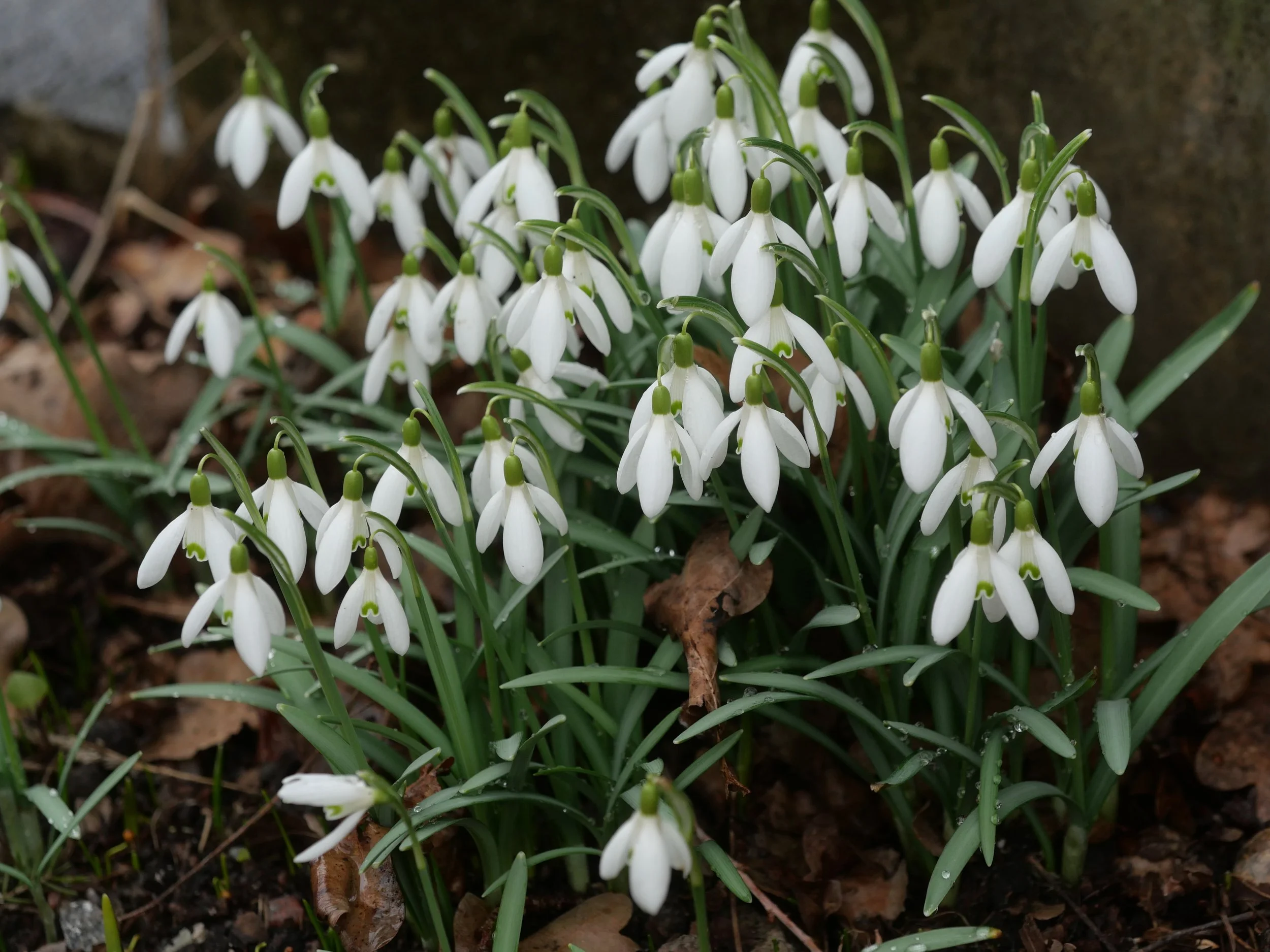 Galanthus transcaucasus. Gröna blad och bor egentligen bort mot Kaspiska havet.